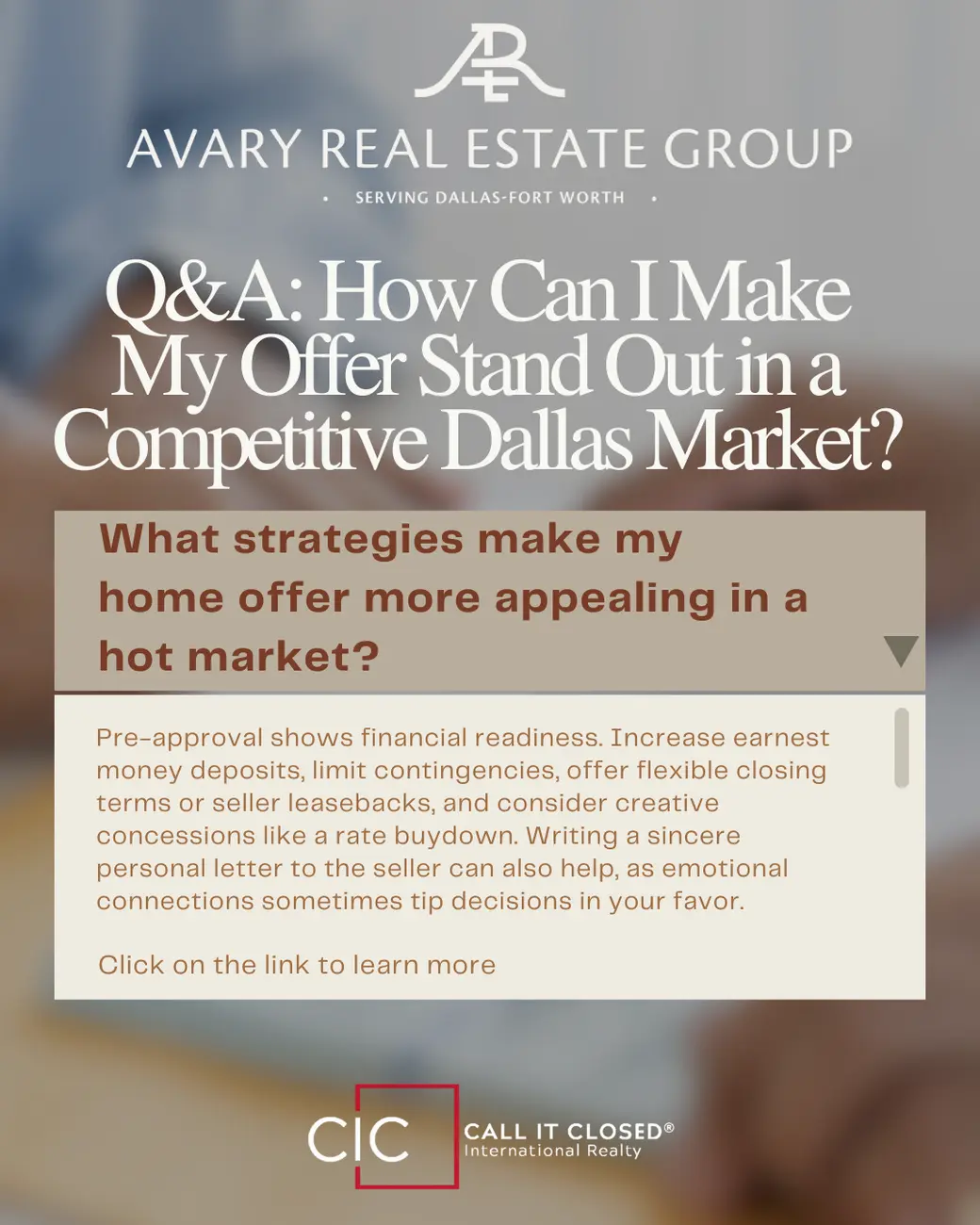 Q: How can I make my offer stand out in a competitive Dallas market?